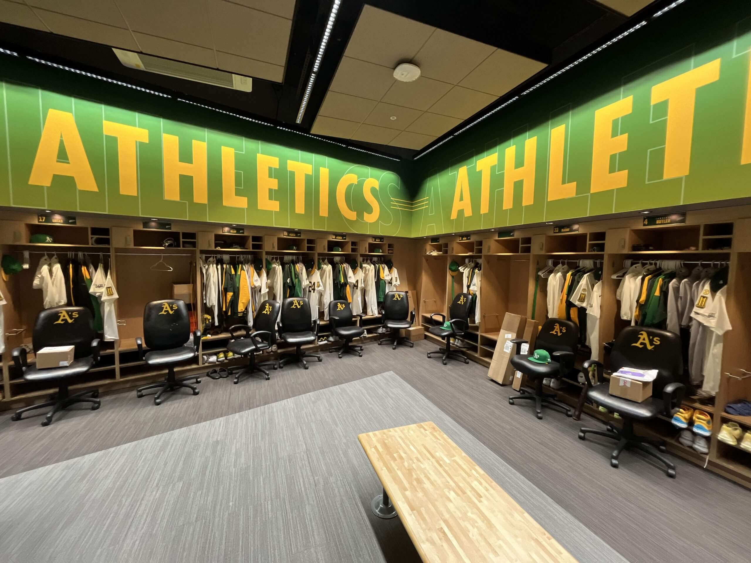 The A’s are proud of the changes made to the stadium itself, particularly considering the short period in which they had to build, and the effort appears to have been earnest. A new two-story home clubhouse, one the A’s day-to-day clubhouse staff had a hand in designing, and a brand-new grass field have been installed.