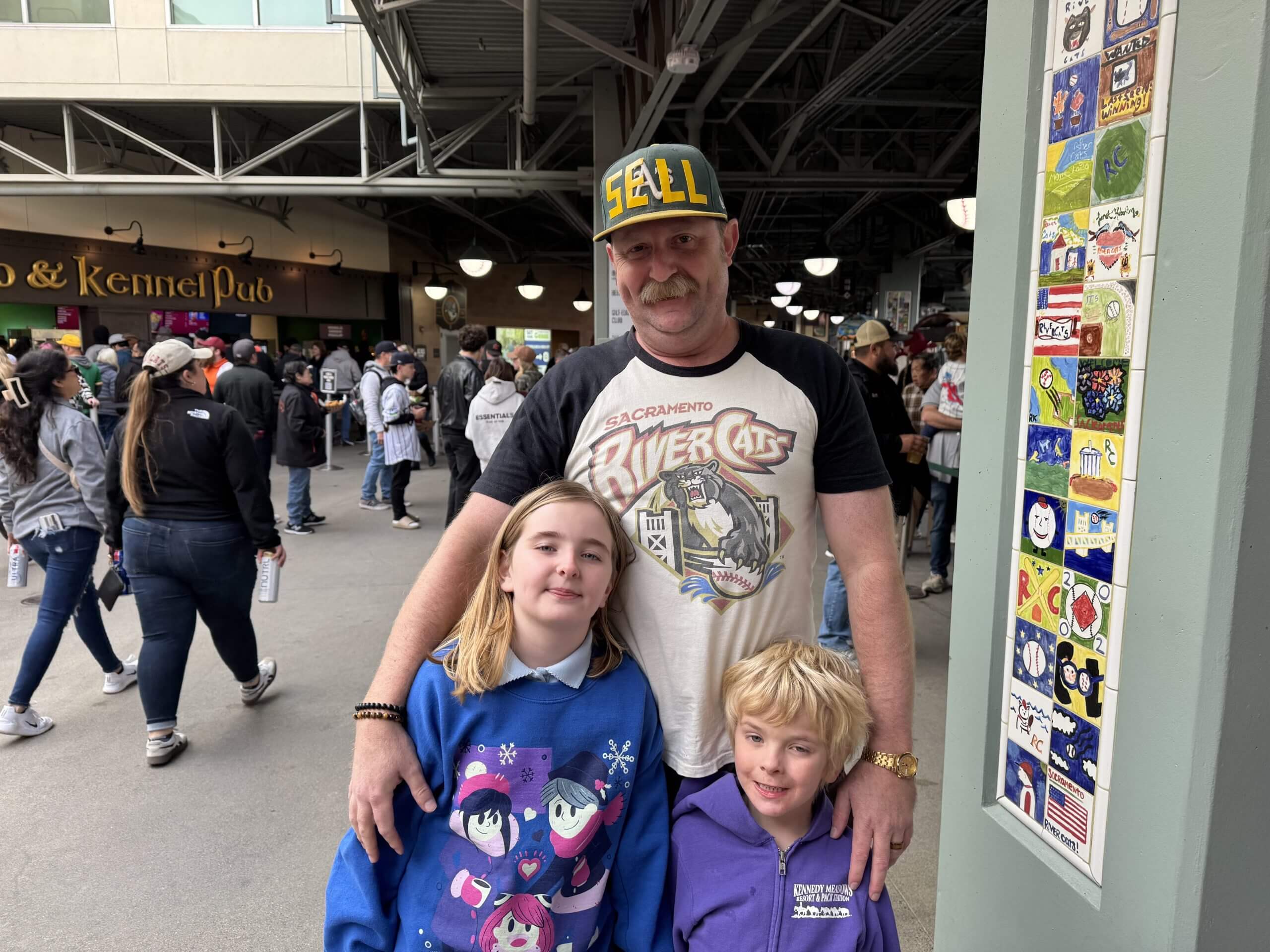 Keefe Mahar and his family at the Sacramento River Cats game. (Evan Drellich / The Athletic)