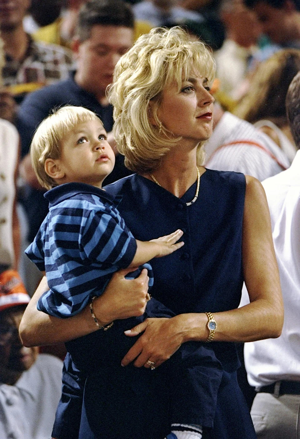 Kelly Ripken holds son Ryan and watches on September 6, 1995.