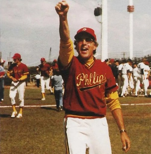 Dr. Record celebrated after Philips won the Area Tournament in 1973 to earn a spot in the NAIA World Series. It was Phillips’s first trip, followed with a second trip to the World Series two years later in 1975. (Photo provided by Record family)
