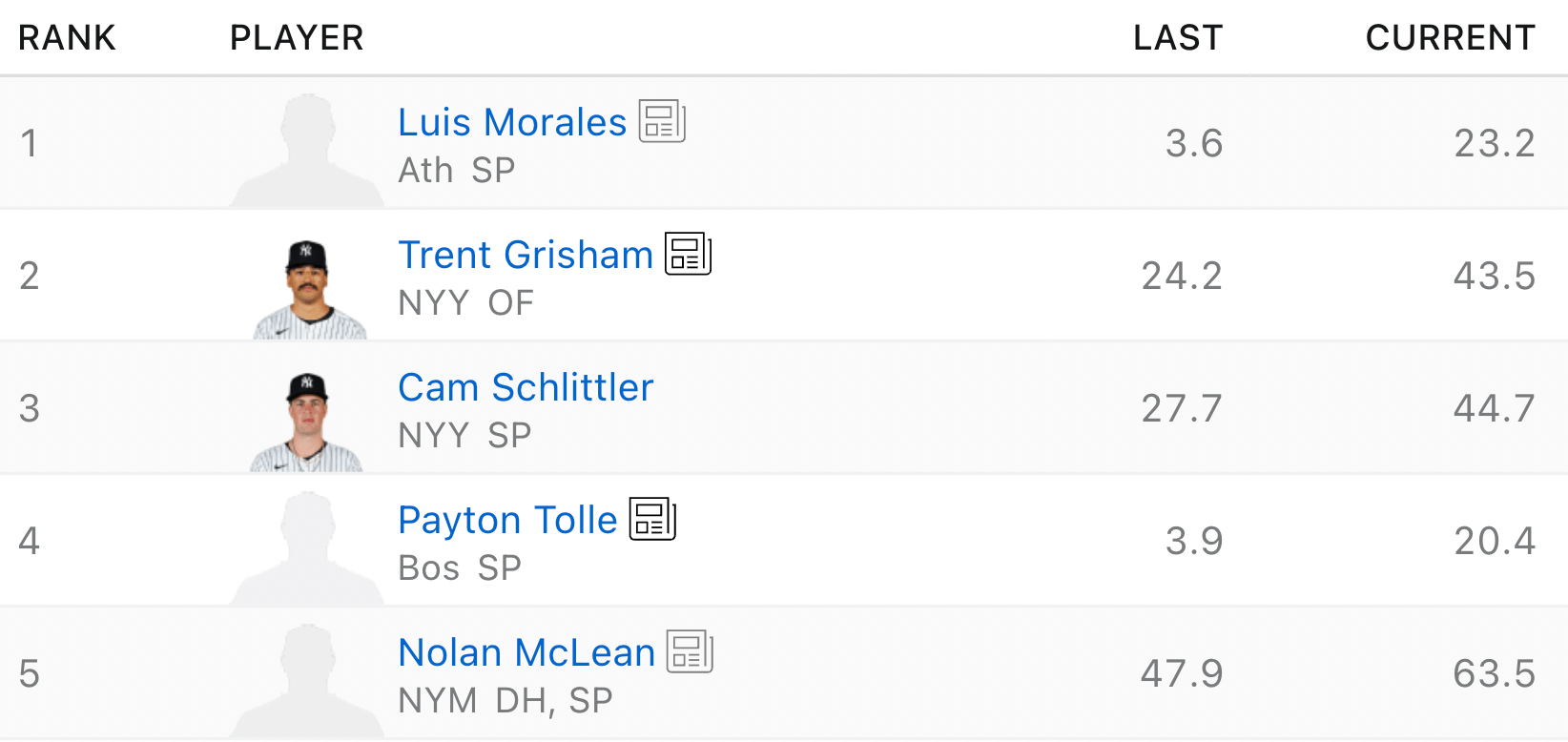 Nolan McLean has looked legit with his excellent sweepers and sinkers. He really might be the ace the Mets have desperately needed. Unfortunately, his schedule will look tough from here on out, with matchups against the Phillies, Padres, and Cubs on the docket. He’s good enough to start for all of these, and it will be interesting to see where he gets drafted next year.