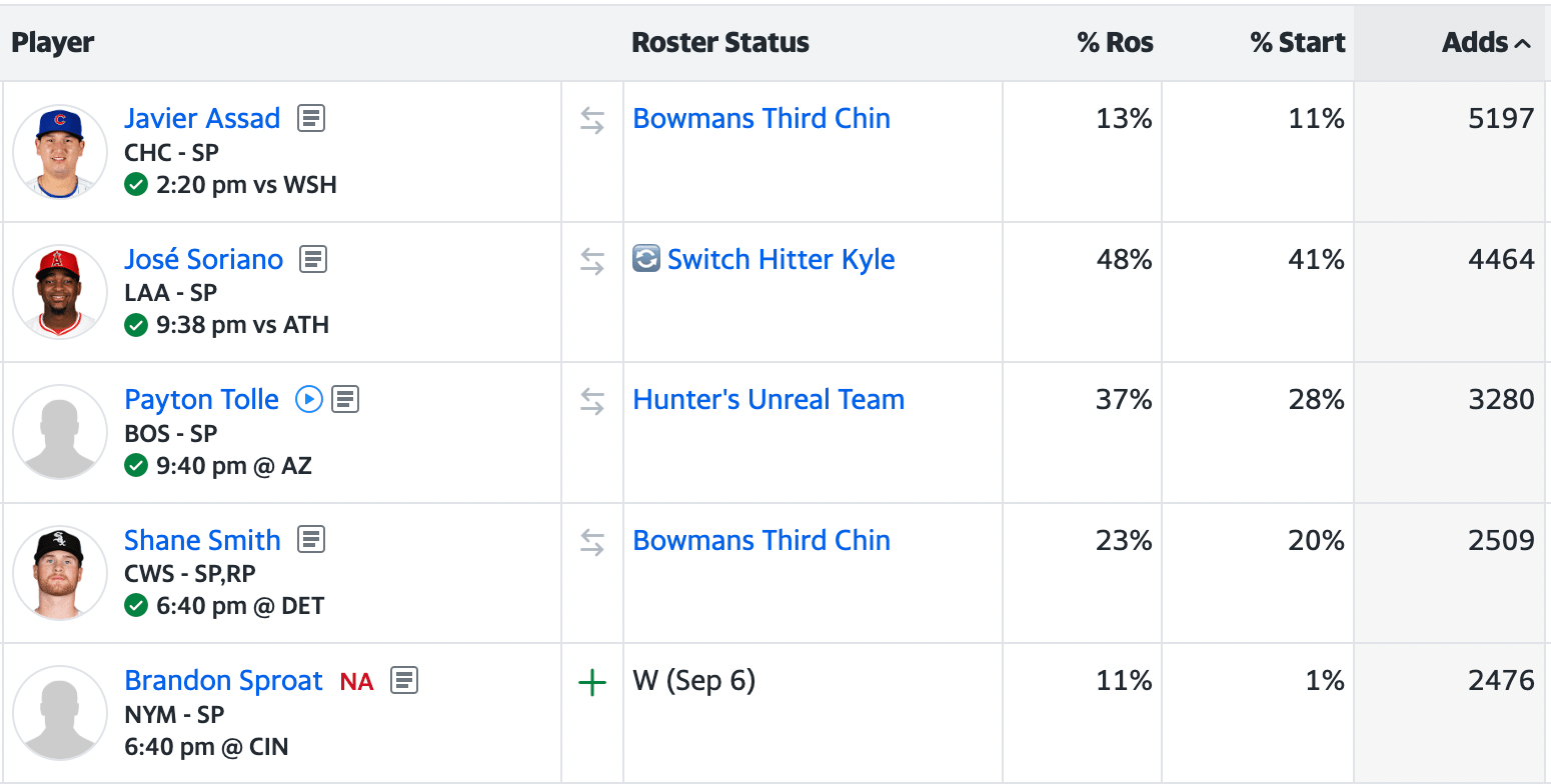 As it often has been, yesterday’s group of adds featured nearly all pitchers throwing that day.