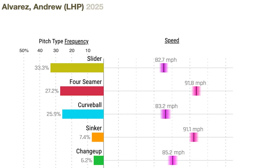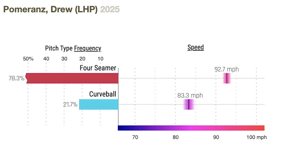 He has obviously never faced the Cubs or anyone on their active roster. Given that he’s left-handed… well, you know. Hoping for the best. His pitch chart below indicates he doesn’t throw particularly hard and relies a lot on offspeed stuff, although the chart is from only one game.