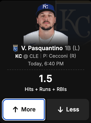 Vinnie Pasquantino More Than 1.5 Hits, Runs, & RBIs