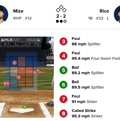 With two outs and a full count on Ben Rice in the sixth, Mize threw a sinker which was, uh, generously called a strike by home-plate umpire Austin Jones.
