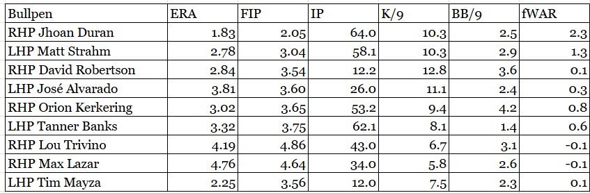 The Phillies’ bullpen has a 4.31 ERA, tenth-highest in baseball. They were helped by the mid-season acquisition of Jhoan Duran, who has a 1.23 ERA since joining Philadelphia, converting 13 of 14 save opportunities. He averages 100.5 mph on his fastball, second-highest in baseball behind only Mason Miller. Matt Strahm has given up just four runs in 25 innings since the start of July for a 1.44 ERA. José Alvardo has allowed five runs in six innings, with a home run in three of his last four games since returning from an 80-game suspension for PEDs.