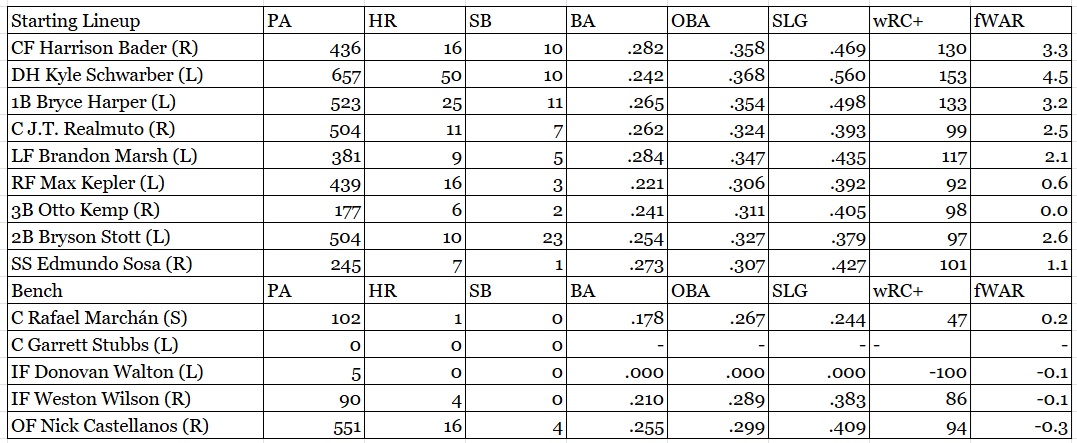 Phillies: 4.82 runs scored/game (9th), 3.98 runs allowed/game (5th)