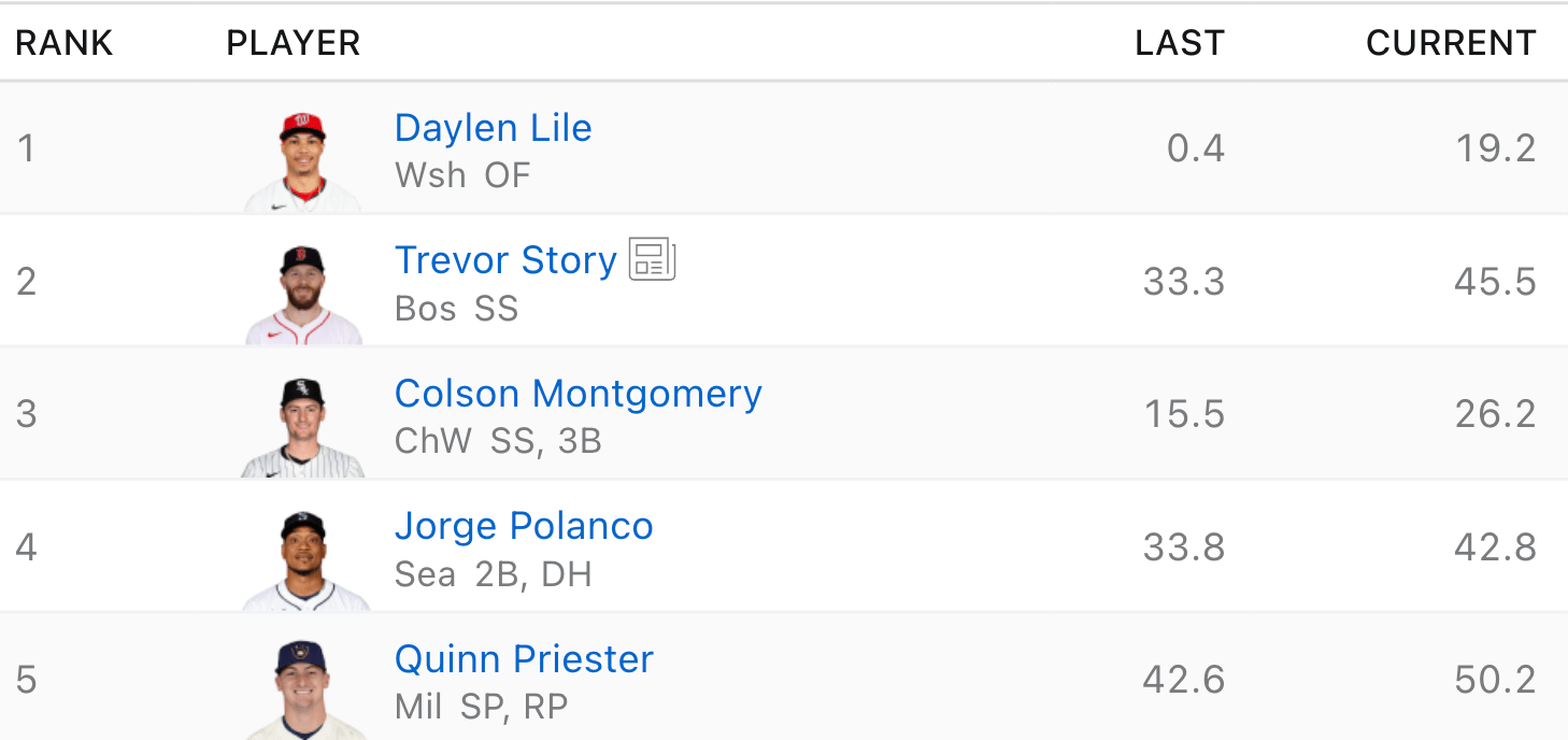 It’s been awesome to see Colson Montgomery really live up to his prospect pedigree after a couple of rough stints in AAA. He is hitting at a 52 home run pace over a full season! That’s nuts. Obviously, it’s difficult to imagine this ever happening, as hitting 50 bombs is an incredible feat. But it’s been awesome to watch him make the most of his incredible bat speed. Where will he go in drafts next year?