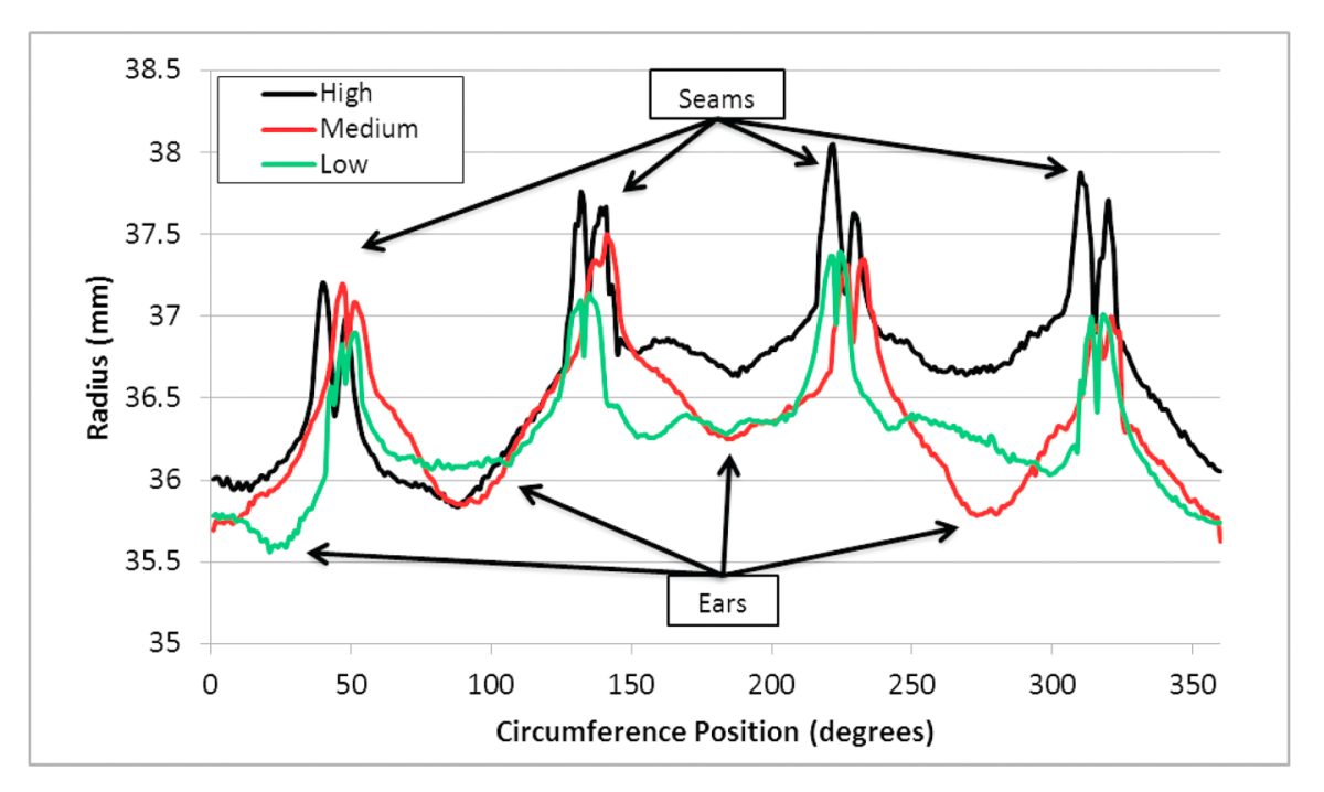 This graphic shows the differences in seam heights of baseballs with low, medium and high seams used in the study by Alan Nathan and Lloyd Smith. (Screenshot of study provided by Alan Nathan)