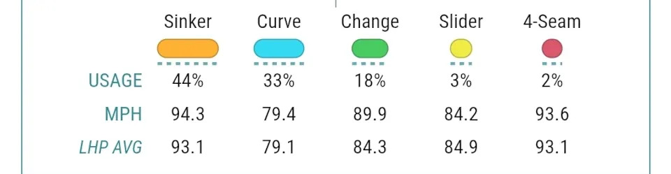 As for the repertoire, there’s a … say it with me … heavy dose of sinkers.