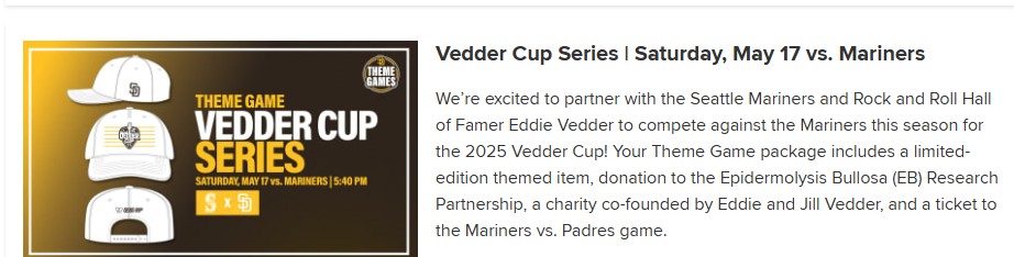 The Mariners and Padres will face off in the Vedder Cup!