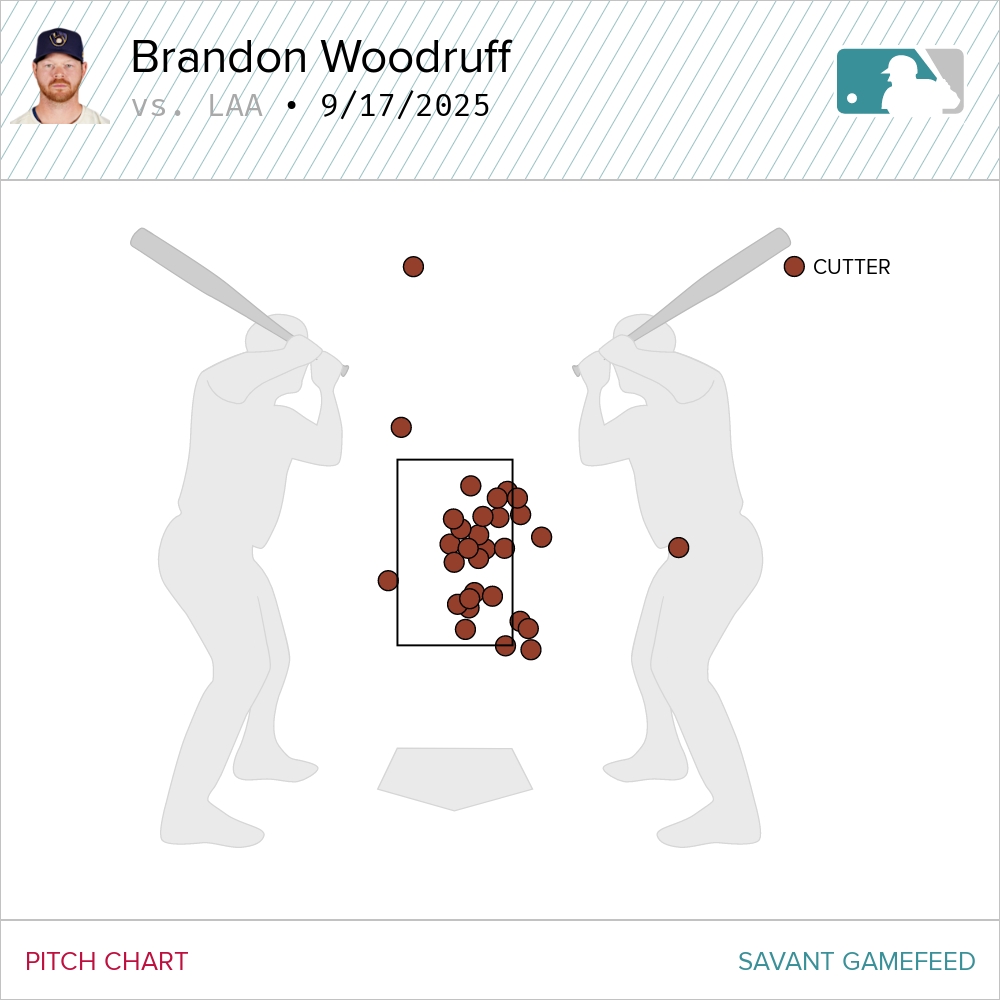 Cutters are not traditionally “swing & miss” pitches, unless you’re Corbin Burnes. But tonight, Woodruff did an impersonation of his former teammate with 8 whiffs on the cutter – also a career-high.