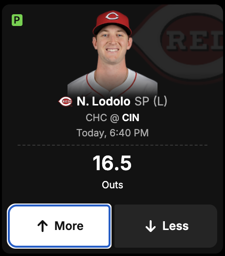 DraftKings Network projection: 54% likely to have MORE than 16.5 Outs Recorded