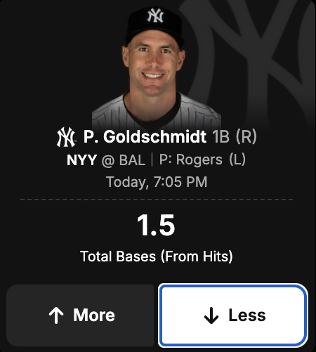 DraftKings Network projection: 54% likely to have LESS than 1.5 Total Bases