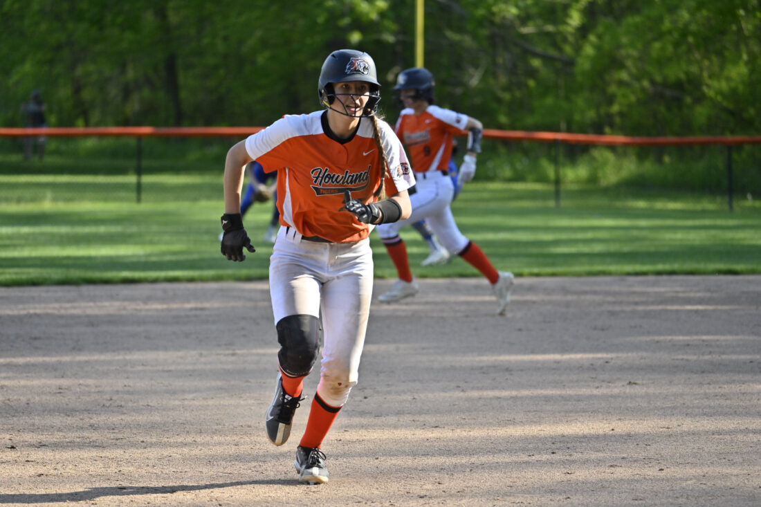 Howland sophomore Maya Kubancsek runs toward third base during Thursday’s sectional final matchup against Wooster in Howland.