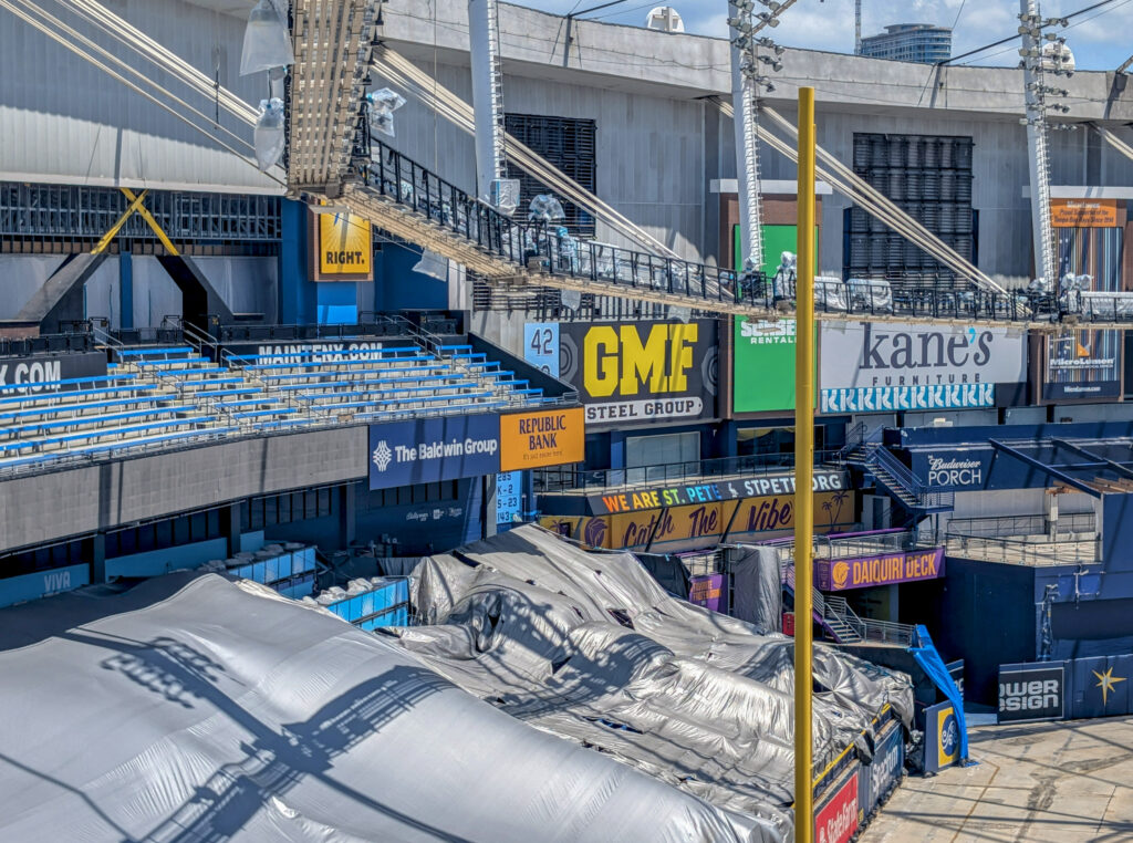 Tarps cover Tropicana Field’s seats in April of this year. Photo by Mark Parker.