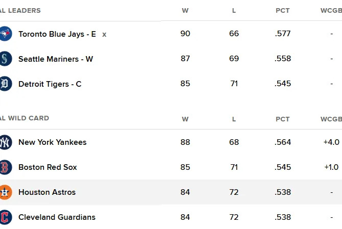 After an ignominious butt-kicking at home at the feet of the Seattle Mariners, the Astros find themselves all but mathematically eliminated from winning the AL West. Their only playoff hope lies in the Wild Card. They are one game behind the Red Sox for the second spot and tied with the Guardians for the third spot. But both teams hold the tie-breaker with the Astros, so the Astros look like a long shot with six games left, especially with how hot the Guardians have been of late.