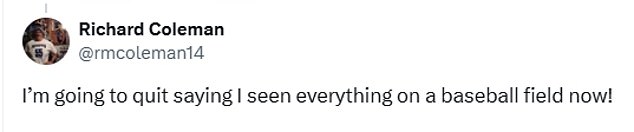 One fan wrote: ‘I’m going to quit saying I seen everything on a baseball field now!’