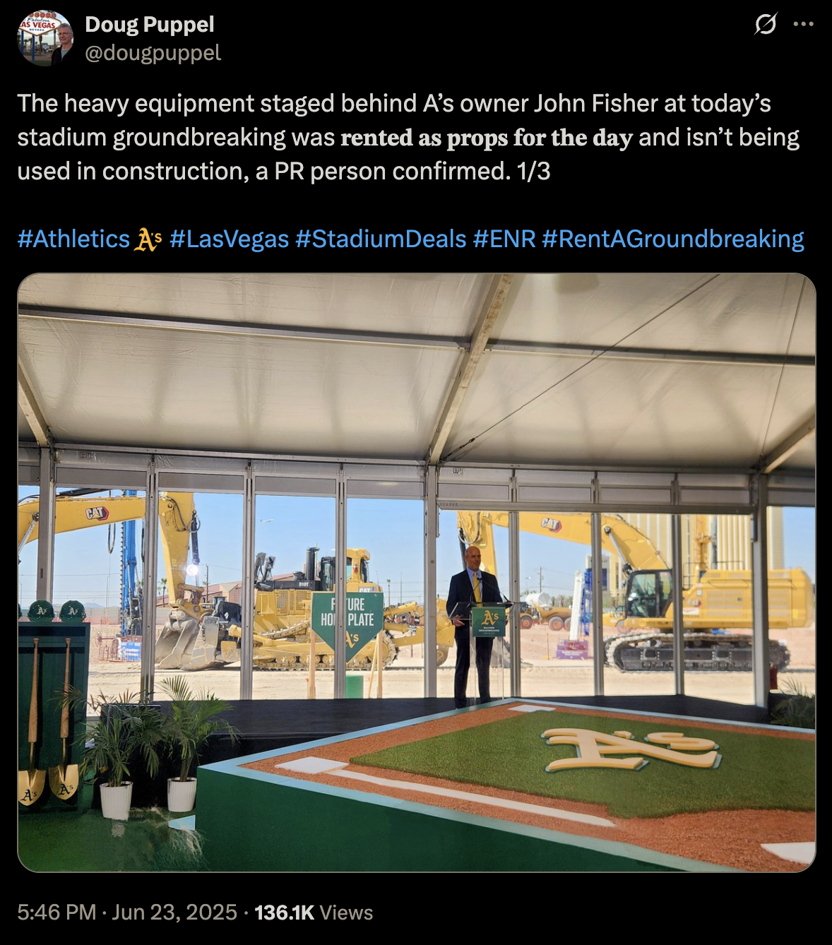 The not-yet-Las Vegas Athletics held a groundbreaking for their proposed new $1.75 billion Las Vegas stadium yesterday, and let’s skip right past all the pomp and circumstance and get to the good bit: