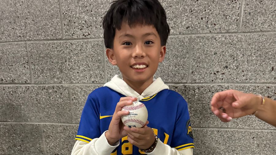 A photo of Marcus Ruelos with Cal Raleigh’s 60th home run baseball. (Photo courtesy of Galan Ruelos)