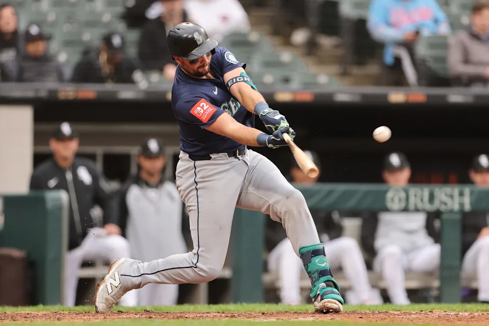 Cal Raleigh of the Seattle Mariners hits a solo home run — his 16th homer of the 2025 MLB season — off Brandon Eisert of the Chicago White Sox during the sixth inning at Rate Field on May 21, 2025, in Chicago.