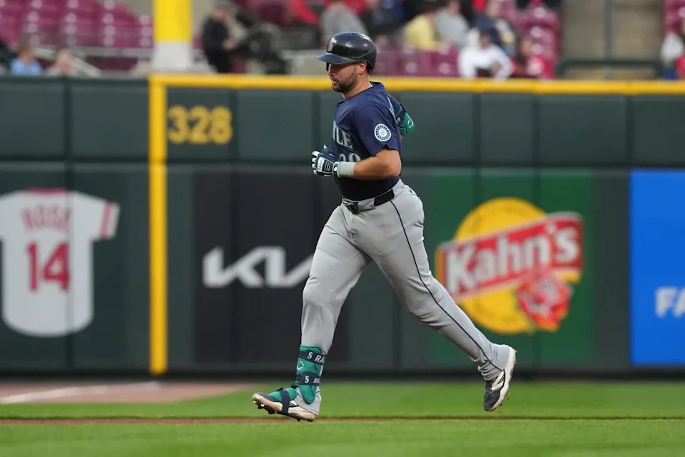 Seattle Mariners designated hitter Cal Raleigh runs the bases after hitting a two-run home run against the Minnesota Twins during the third inning at T-Mobile Park in Seattle on May 31, 2025, to give Raleigh 22 homers in 2025.