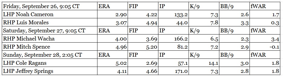 The Athletics have yet to announce any starters for this series, but Luis Morales, Mitch Spence, and Jeffrey Springs are due up in the rotation, although former Royals farmhand Mason Barnett could get a start.