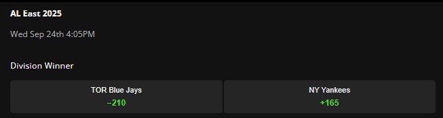 With two games left at home for both clubs, the AL East crown is still up for grabs. On DraftKings Sportsbook, here are the odds entering the weekend: