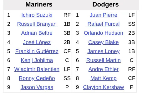 One exception may be Clayton Kershaw who might have a little extra zip as he makes his 451st and final regular-season start this afteroon. It’s just been announced that he’ll be left off the Dodgers’ Wild Card Round roster, so it’s entirely possible this is his last time on an MLB mound ever. He’s faced Seattle just five times in his storied career, games in which he’s got a 2.03 ERA and a 35.6% strikeout rate. Here were the starting lineups the first time he faced the Mariners.