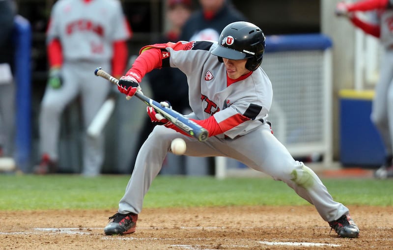 Utah Utes center fielder DaShawn Keirsey, Jr. attempts a bunt during a game against the Brigham Young Cougars at Miller Field in Provo, Tuesday, March 15, 2016. | Chris Samuels, Deseret News