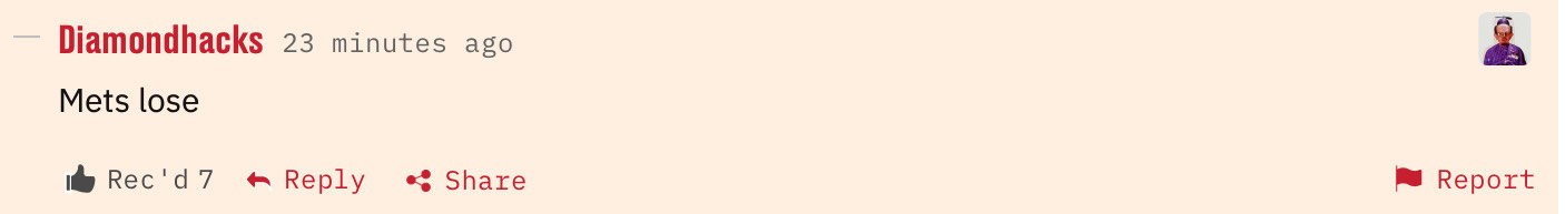Alek Thomas, whose hitting has been for ca-ca this season, did manage an eighth-inning two-out double. Alas, his one flash of brilliance was obliterated by a James McCann strikeout, an Ildemaro Vargas groundout, and another strikeout from Jake McCarthy. The bottom of the eighth saw one single from George, er, um, Ryan O’Hearn and a walk for Jackson Merrill that were fortunately surrounded by a Bryce Johnson lineout, a Will Wagner groundout, and a Mason McCoy strikeout.