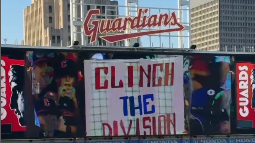The video below shows the crowd at Progressive Field cheering after the Tigers lost in Boston, cementing the Guardians as division champions.