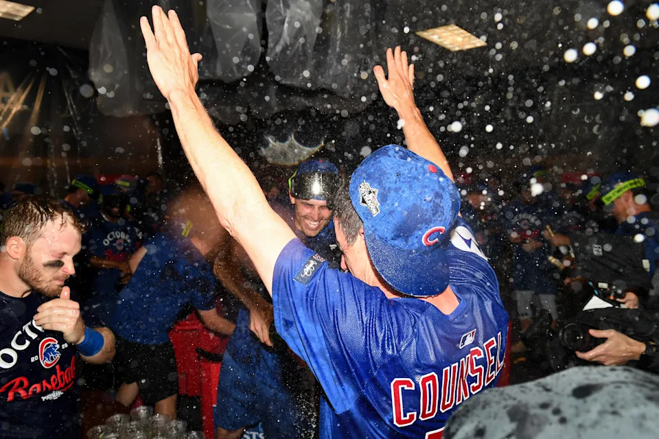 Chicago Cubs manager Craig Counsell celebrates the team clinching a spot in the 2025 MLB playoffs on Sept. 17, 2025, after an 8-4 win over the Pittsburgh Pirates at PNC Park in Pittsburgh.