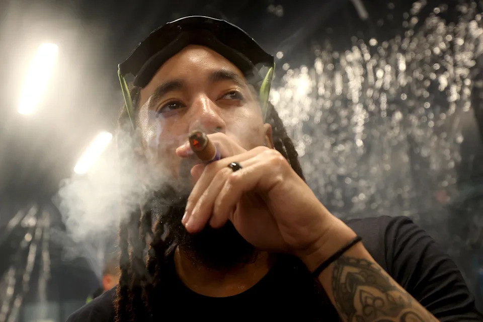J.P. Crawford of the Seattle Mariners smokes a cigar after beating the Colorado Rockies to clinch a 2025 MLB playoffs berth at T-Mobile Park on Sept. 23, 2025, in Seattle.