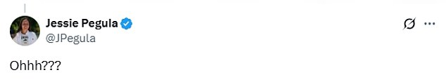 Directly responding to the account’s post, tennis star Pegula wrote: ‘Ohhh???’