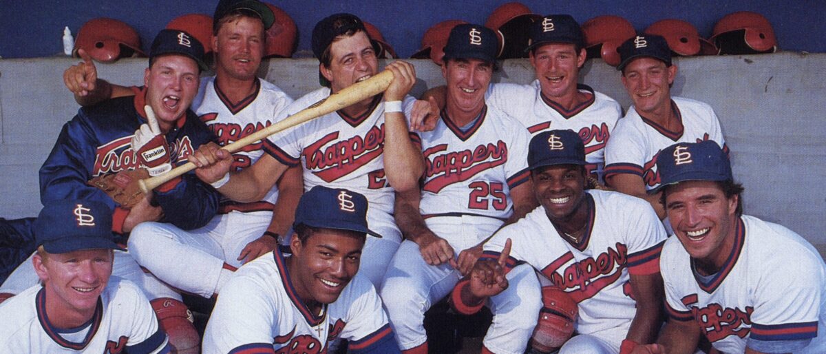 Members of the 1987 Salt Lake Trappers baseball team pose for a photo in a dugout. An independent film named ‘The Streak’ documents the team’s U.S. professional baseball record 29-game win streak and the people’s lives following the accomplishment.
