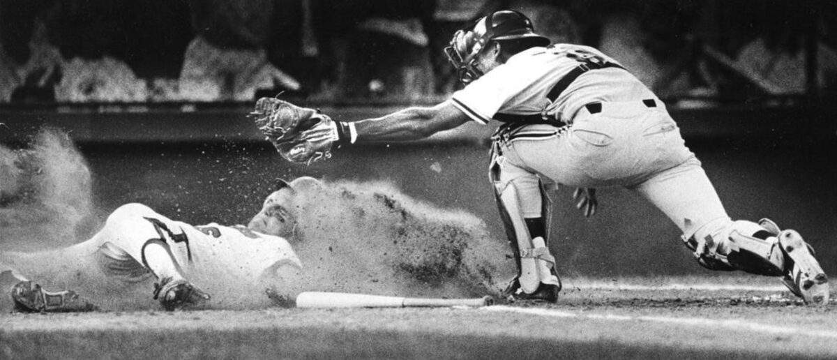 This 1987 photo shows a Salt Lake Trappers player sliding into home plate during the Pioneer Baseball League season.