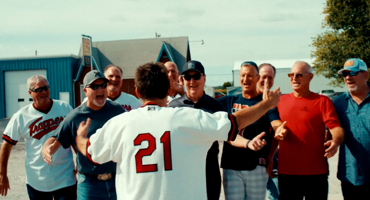 In this still from the documentary ‘The Streak,’ Former Salt Lake Trappers captain Frank Colston (21) approaches former teammates during a reunion in Clinton County, Illinois.