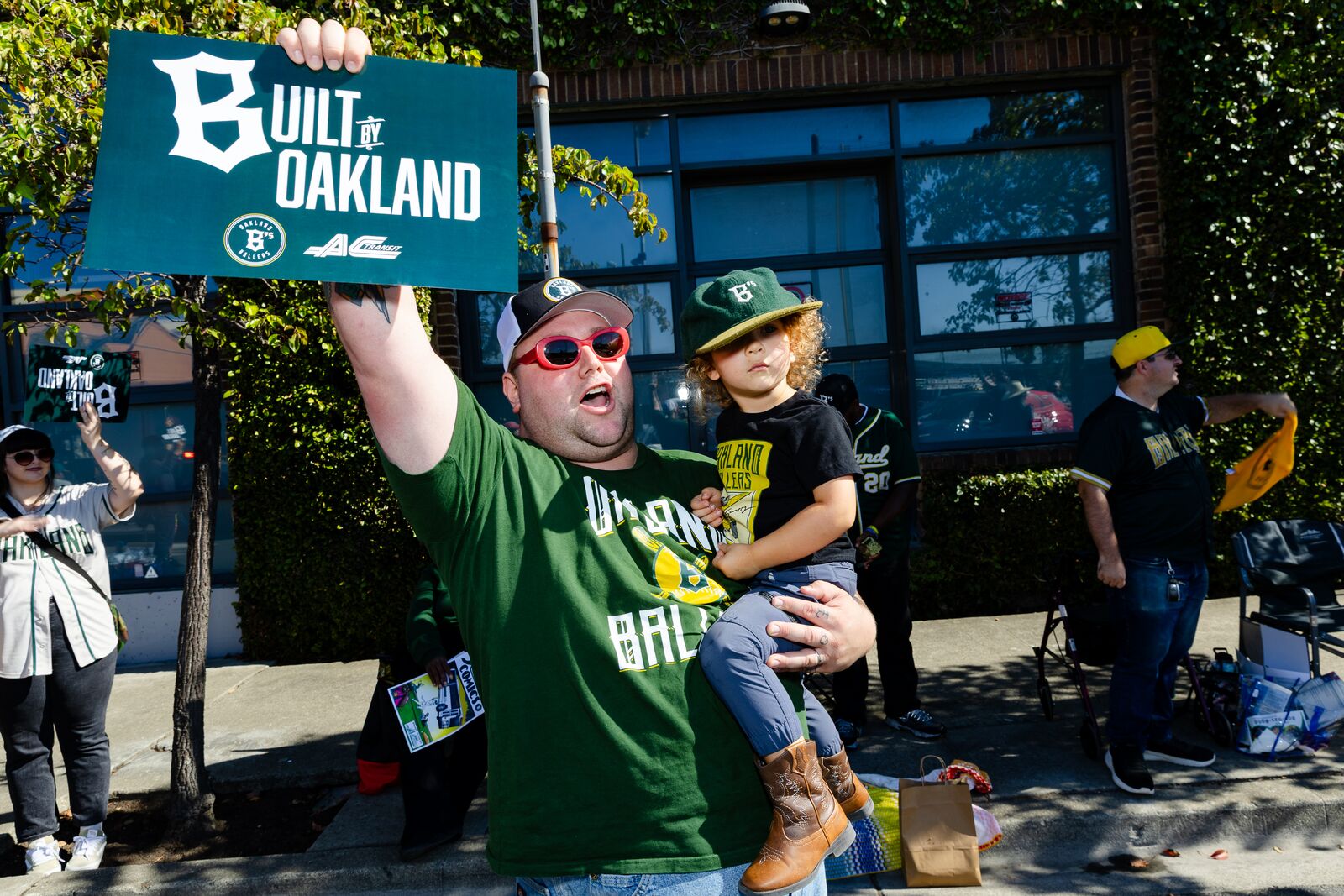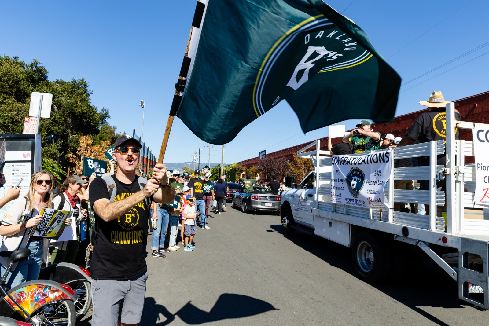 Diosa Díaz, who settled down with her son, Phoenix, on the sidewalk on Campbell Street to watch the parade, told us that she witnessed how a personal connection with players made her son more invested. She said Phoenix attended a baseball clinic this summer at Raimondi Park where the team’s players made themselves readily available to teach the kids. The Ballers’ cheaper tickets — compared to what it cost to see the A’s — made it easier to attend more often, further forging a connection. Ticket prices for next season range from $10 to $35