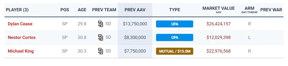 That means the 2026 rotation consists of Pivetta, who was easily the best starter for San Diego in his first year with the team, and two question marks with regard to health, in Darvish and Musgrove. Vasquez had moments where he looked dominant, but never seemed to get the full trust of Padres Manager Mike Shildt to pitch deep into games. Sears had a bumpy start to his Padres career after coming over from the Sacramento Athletics at the trade deadline and Cortes finished the season on the bench with an injury, and like Cease and King, is a free agent.