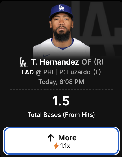While a home run feels like it could be in play, I am opting to be a bit safer and back Teoscar Hernandez to record more than 1.5 total bases. He has reached this figure in all three postseason games thus far, and I expect this trend to continue in the favorable matchup.