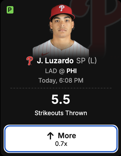 When he is at his best, Luzardo looks practically unhittable on the mound and is one of the bigger strikeout threats in baseball. His 216 total strikeouts this season were tied with Paul Skenes for the fourth-most in all of baseball. The Phillies need a strong start from their biggest offseason addition and count on Luzardo to meet the weight of the moment. Look for him to deliver with more than 5.5 strikeouts for the third time this season against the Dodgers and 23rd time this year.