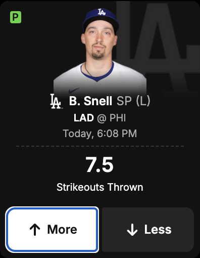Snell has struck out more than 7.5 batters in five of his 11 starts this season, including two of his last three and three of his last five. Los Angeles will have a long leash on his usage, given the concerns they have with their bullpen, and will allow Snell to remain in the game if he is looking sharp. Count on the 32-year-old to be ready to meet the moment and sit down more than 7.5 Phillies hitters for the second time in the past month.