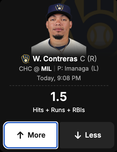 Contreras slashed .260/.355/.399 this season with 17 home runs and 76 RBIs tallied. He hit .297 across his matches with the Cubs this year with two home runs notched. While a home run will be on the table, look for Contreras to tally more than 1.5 combined hits, runs, and RBIs to play it a bit safer. If he does get a hold of a home run, he will reach this total in just one swing, but this allows more variety in how he can achieve the statistical accomplishment. Count on Contreras to continue to deliver as one of the key members of this Brewers team and tally more than 1.5 combined hits, runs, and RBIs tonight.