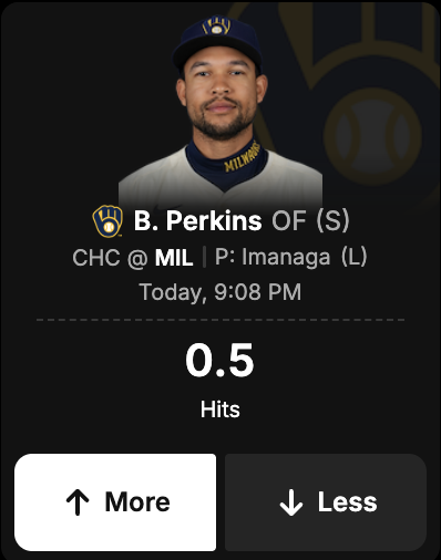 Against left-handed pitching, he has slashed .271/.352/.438 with a .789 OPS compared to .206/.274/.308 slash marks against righties with a .582 OPS. Imanaga is a left-hander, and Milwaukee should show no hesitation to keep Perkins in the lineup. This is especially the case considering Perkins is 3-for-4 against Imanaga in his lifetime with two doubles and a home run. The 29-year-old is playing with high confidence and has performed well at the plate of late. Look for this to continue in this favorable matchup and for Perkins to notch a hit tonight.