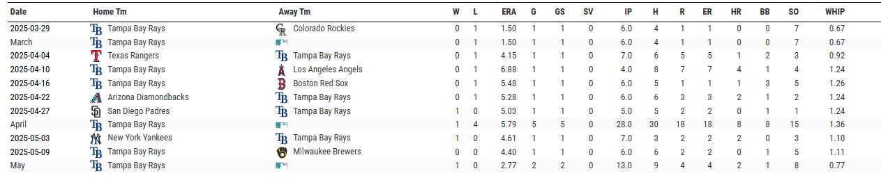 I love to talk and write about players like Littell. Why? He’s constantly underrated and undervalued. There are examples of guys who always seem to outperform their peripheral metrics. Littell is one of those. He, too, had a rough April, getting only one win against four losses with an unsightly 5.79 ERA and 1.36 WHIP. But since the calendar turned to May, two wins in three starts, a 3.10 ERA with a 0.93 WHIP. The drawbacks here are the low strikeout numbers (21.5% this season) and propensity to give up home runs. But he limits damage with his 4.7% walk percentage, and proves to be usable more often than not.