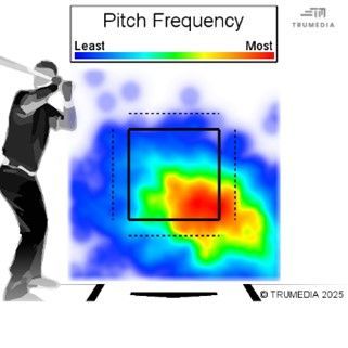 The game plan goes something like this: throw hard stuff (four-seam fastballs, sinkers, cutters) on his hands, largely down, then mix in softer stuff to keep him honest, locating those pitches down and on the corners — where he is least likely to do damage. If you miss, miss outside of the zone, not toward the middle. Don’t be afraid to nibble around the outside of the zone and live to fight another day.