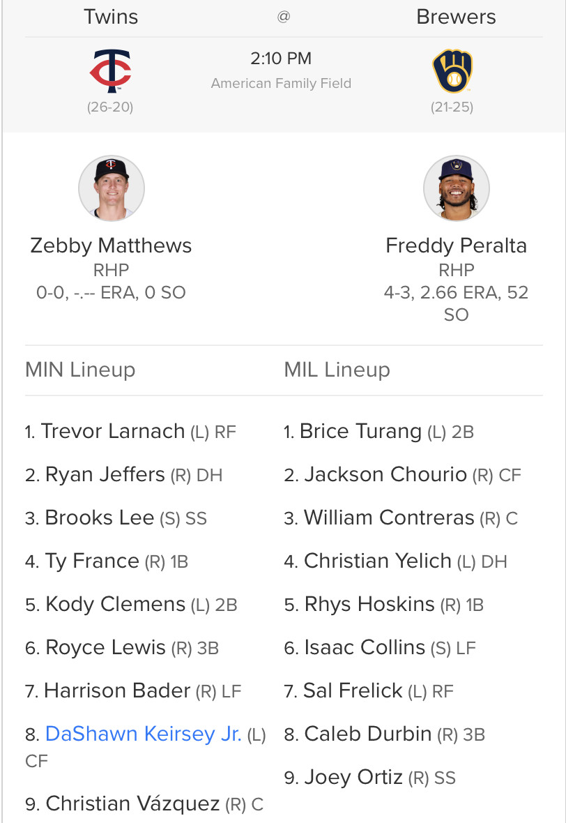 I have nothing to say about the Milwaukee Brewers today. The Minnesota Twins play them twice a year as the designated “Interleague Rival”, which has always felt kind of dumb because it’s far more fun to beat Wisconsin’s NFL squad. Terry Mulholland also ruined my trip to the Park-formerly-known-as-Miller in 2004.