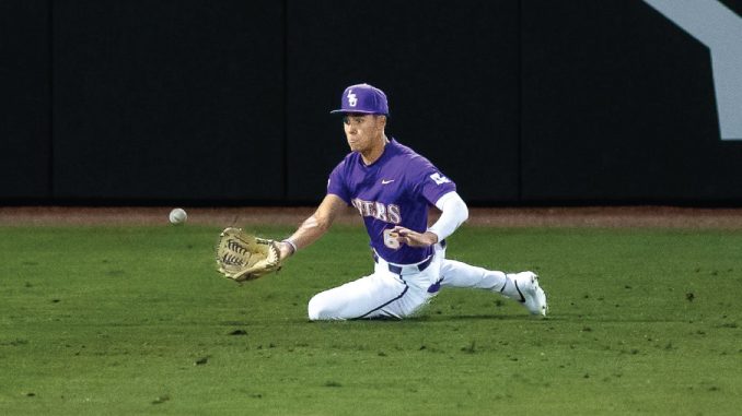 LSU’s Derek Curiel showed he could play center field last season as a freshman in left field. (Tiger Rag photo by Michael Bacigalupi).