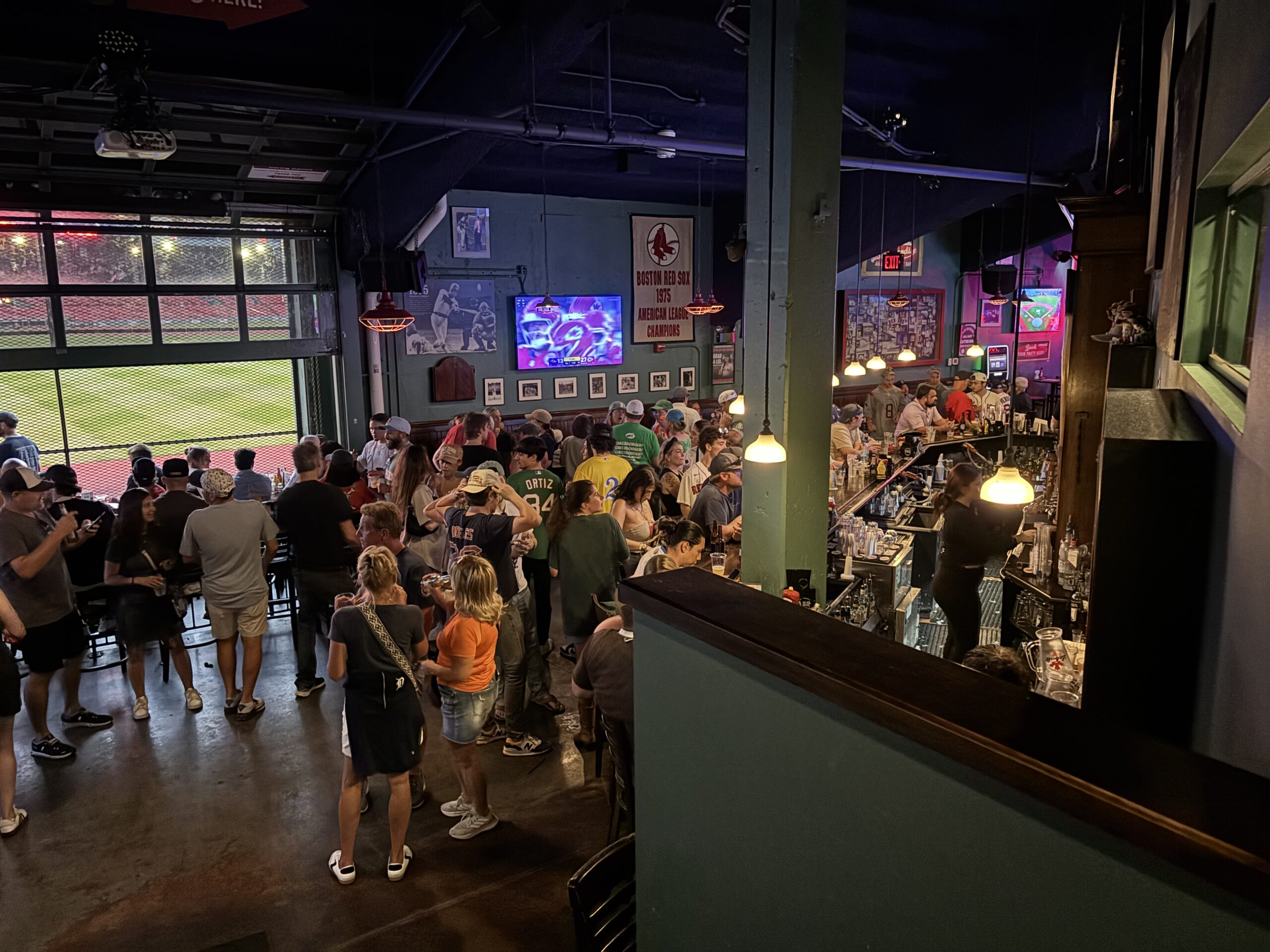We strolled down Lansdowne Street behind the Green Monster after the game, an area bustling with entertainment. Following a tip from Quincy’s own Charlie Vogel, we ducked into the “Bleacher Bar,” which features a screened, field level view of Fenway from center field.